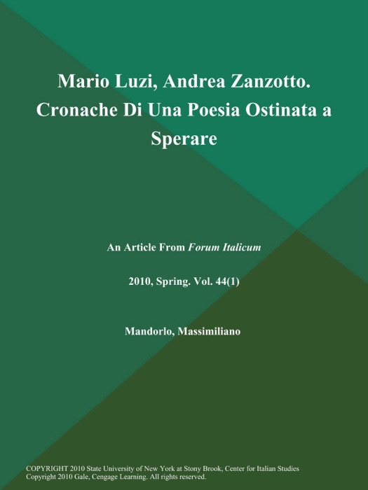 [DOWNLOAD] "Mario Luzi, Andrea Zanzotto. Cronache Di Una Poesia Ostinata a Sperare" by Forum Italicum ~ eBook PDF Kindle ePub Free